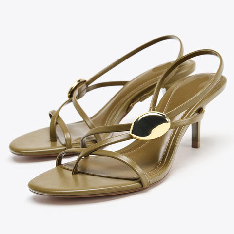 סגנון גבוה stiletto נשים רצועה אחת המחודדת הבוהן חלול מתכת ארוגים עיצוב קיץ עקבים גבוהים סנדלים