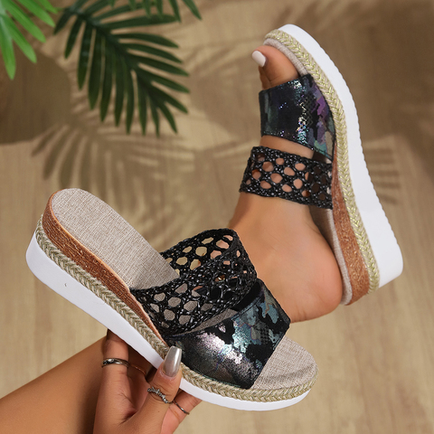 Grande Tamanho 2025 Verão New Slope calcanhar chinelos com escavado Out Sandálias Praia